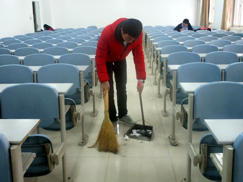 19日中午志愿者们对二号教学楼所有的教室进行了清洁工作,旨在为全校同学们创建干净整洁的学习环境。尽管工作繁重,但是志愿者们没有丝毫怨言,这充分体现了“友爱奉献,互助进步”的雷锋精神,也展现了我院学生积极向上的精神风貌。