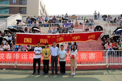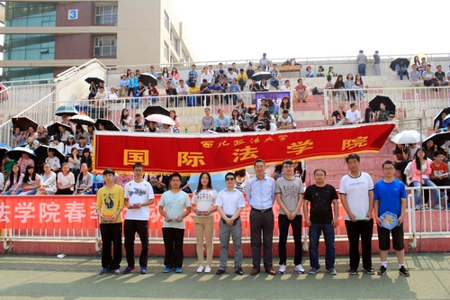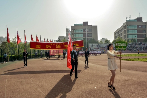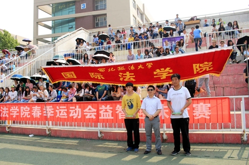 当天早上8点,伴随着运动员进行曲激昂的旋律,由一百多名2014级学生组成的入场式代表方阵迈着整齐自信的步伐入场。他们喊着“凌云赛场,斗志昂扬,国际学子,再创辉煌”的口号,引来了全校师生的喝彩。他们个个活力四射、意气风发,彰显了国际法学子昂扬向上的精神面貌。