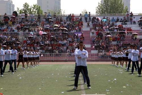代表队2014级学生精心编排的舞蹈《追梦青春》令人耳目一新。该舞蹈经过了一个多月的艰苦排练,由《快乐合成器》、《我的滑板鞋》和《小苹果》三部分组成。青春靓丽的服装,轻松欢快的舞曲,整齐划一的舞步和丰富变换的阵型引来了全校师生的阵阵欢呼。