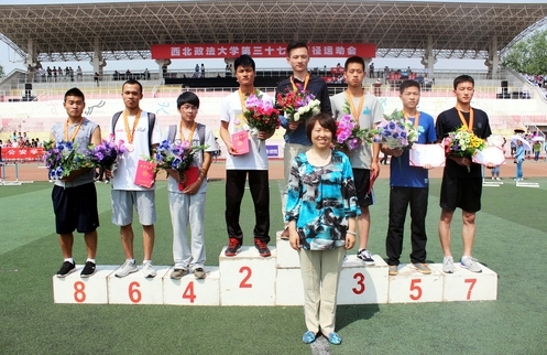 在激烈的竞赛项目进行的同时,为了让更多的同学留在运动场上并参与本次运动会,我院还开展了益智趣味竞赛。我院党委副书记、副院长乔军伟老师,团总支书记、2013级辅导员冯斐老师,2012级辅导员苏芝双老师,2014级辅导员韩潇老师分别为益智趣味竞赛中获奖的同学颁奖并合影留念。