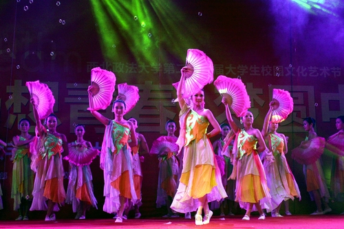 晚7时,校园歌手舞蹈大赛正式开始。各学院编排的舞蹈别出机杼,异彩纷呈。其中我院编排的舞蹈《茉莉花》在舞蹈类节目中第七个出场。演员们裙角翩飞,以扇为瓣,以舞为花,用优美轻盈的舞姿演绎着一朵朵清香幽远的茉莉花,赢得了现场观众的热烈掌声。整个舞蹈的编排训练历时两个月,学院邀请了专业的舞蹈老师对演员进行严格挑选并指导舞蹈的编排与训练。二十五名演员每天进行训练,克服了密集训练带来的重重困难。而在歌手大赛中,我院2014级韩璀妍同学以其独特的嗓音演唱了一首《海芋恋》,征服了现场的观众,获得了阵阵掌声与喝彩。最终我院的舞蹈《茉莉花》在舞蹈类节目中获得优秀奖,韩璀妍同学演唱的歌曲《海芋恋》在歌曲类节目中获得优秀奖。