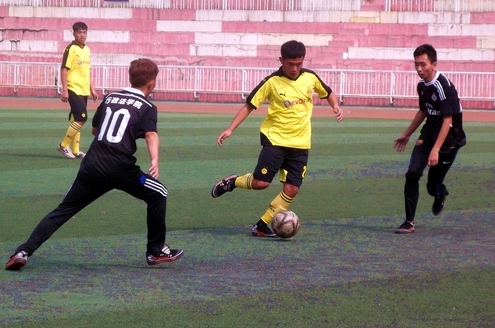20151013日中午1235,69堂 校足球联赛之69堂 VS行政法学院比赛于田径场火热进行。