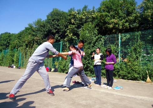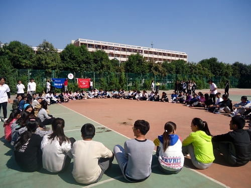 学生会2015级新生素质拓展训练在体育馆前方的排球场上正式举行。本次活动包括四个项目:“直呼其名”,“坐地起立”,“勇过雷区”和“达芬奇密码”。参与训练的大一干事们被分为四队进行活动。在经过两圈慢跑的预热之后,活动正式开始。
