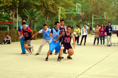 2015级迎新篮球赛决赛于九号篮球场正式开赛,由2015级三班对战四班。69堂