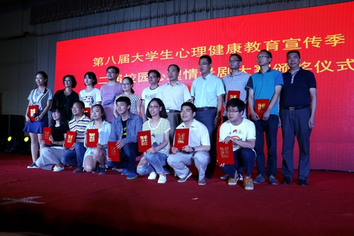 第二届校园心理情景剧大赛决赛暨第八届大学生心理健康教育宣传季闭幕式。在比赛中,我院作品荣获得一等奖。我院党委副书记、副院长乔军伟老师,团委书记、2015级辅导员秦音老师,团总支书记、2013级辅导员冯斐老师、2012级辅导员苏芝双老师和2014级辅导员韩潇老师出席了本次比赛。