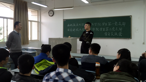 我院学生第一党支部为增强同兄弟院校党建工作交流,吸收党建工作先进经验,特邀西安科技大学电控学院学生第三党支部一行7人,在支部书记童康胜同志的带领下,来到69堂 开展支部建设交流,受到了我院2014级辅导员韩潇的热情接待和同学们的热烈欢迎。
