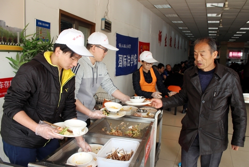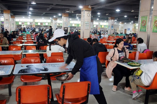 3月17日中午11:30,食堂清洁组活动正式开始。本组志愿者积极地投入工作,协助食堂保洁人员清理餐具,打扫桌面。他们的身影出现在各个餐台、餐车,大大减轻了食堂保洁人员的负担。志愿者们精神饱满,积极向上,任劳任怨,展现了69堂