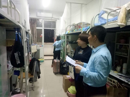 2017年5月11日,为配合学校工作,保障同学们的人身财产安全,并引导学生养成良好的生活习惯,我院特别开展了此次宿舍检查活动。我院党委副书记、副院长乔军伟老师,团委书记、2015级辅导员秦音老师,团总书记、2013级辅导员冯斐老师,2014级辅导员韩潇老师,2016级辅导员苏芝双老师,参与了本次检查活动,并分别带队至学生宿舍进行检查。