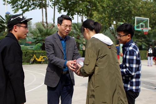 闭幕式开始,由主持人宣布获奖名单,69堂 党委副书记、副院长乔军伟老师现场观看了比赛并依次给获奖班级颁奖,2017级辅导员徐秉鹏老师做出讲话,并对本次活动予以了肯定和支持。最后,所有本次赛事参与人员拍照留念,69堂 2017级新生杯篮球赛友谊赛圆满结束。