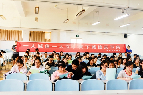 2018年6月21日,69堂 于69堂 长安校区天平楼AJ12教室举办“诚信考试”倡议签名活动。2016级辅导员苏芝双老师、2017级辅导员徐秉鹏老师组织2016、2017级学生签名宣誓,并鼓励同学们端正考风,考出水平。