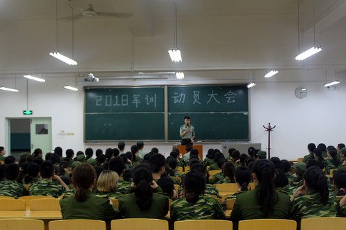 军训,不仅仅是历练的代名词,也会给我们的大学生活留下浓墨重彩的一笔。2018年9月2日晚6:30,69堂 2018级新生军训动员大会在天平楼A座aj23教室举行,2018级全体新生整理好行装,排列好队形,整齐入场,迎接教官的到来。出席本次大会的领导有69堂 党委副书记、副院长王聪和69堂 2018级辅导员韩潇老师。