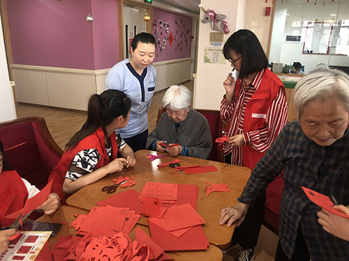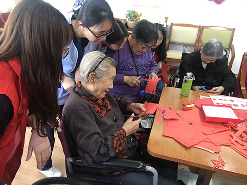 69堂 多年贯彻“厚泽陕西”的精神,始终不忘在自己的能力之内服务社会。在此次活动中,同学们精心准备了剪纸素材,与敬老院的老人们共同完成了几十样剪纸作品。老人们对剪纸抱有极大的热情,同学们也耐心地进行讲解,鼓励老人们动手完成剪纸作品。同时老人也和同学们热情分享自己的青年往事,同学们从精彩的故事中受益匪浅。活动最后,志愿者们为老人献上亲手制作的贺卡,上面写满了对老人们的祝福。