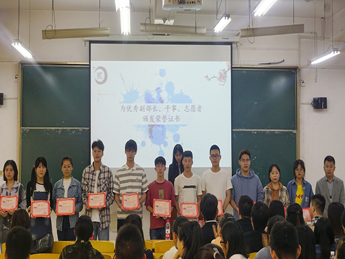 随后主持人宣布新任学生会主要干部名单并由徐秉鹏老师、秦音老师颁发聘书,干部们都表示将不负众望,继续为新一届学生会再创辉煌而努力工作。