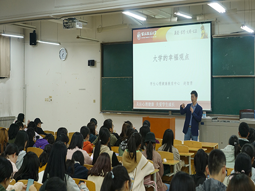 在BJ12召开新生入学教育之心理健康讲座,本次讲座由二级心理咨询师、校学工部主管心理教育负责人赵智勇老师主讲。首先,赵老师全面阐述了大学的幸福观点,从常见的生活例子入手,详细讲解了自我认知,同学关系,家庭生活这三方面内容,指导学生如何正确处理三者之间的关系。同时,赵老师讲解穿插案例,使深奥的心理学理论通俗易懂,赢得现场好评如潮。同学们纷纷表示受益匪浅,不仅掌握了放松心情的方法,而且懂得如何调整心态,自信迎接学习和生活中的挑战。此次心理健康教育讲座进一步提高了学生的心理素质,对培养学生健全人格和坚韧品质、推进校园心理健康教育工作和促进学校和谐稳定发展具有积极作用。希望同学们能够在未来扬帆起航,以梦为马不负韶华!