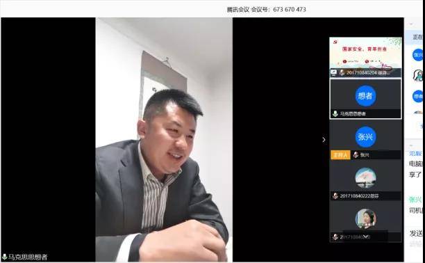 69堂 2017级2班组织召开线上“国家安全,青年担当”主题班会。会上,徐秉鹏老师讲到:“我们政法学子,身为法科生在国家安全法规领域要加强自己的知识储备,用自己的专业知识与时代热题相结合,在提升自己专业水平的同时提高自身国家整体安全观念的构建”。张兴同学表示:今天的美好生活来之不易,作为青年大学生更是应该主动承担起这份守卫国家安全的责任;作为青年学生党员,自身更要发挥党员模范先锋作用在相关领域加大知识储备,提高思想认识。其后,全体共同学习校学工部近期下发的《国家安全教育——学习材料汇编》,同学们对会议主题进行了热烈讨论。
