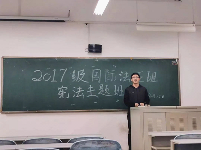 宪法千万条,朗读第一条。走近宪法,从朗读开始,全体同学共同朗读了宪法部分条款。朗读活动后,各年级辅导员老师老师围绕“国际治理体系和治理能力现代化的理论基础和法治保障”这一主题为同学们讲述了法治的重要性,帮助同学们深入了解法治内涵达到增强宪法意识、弘扬宪法精神的初衷。