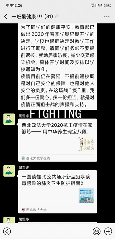 疫情目前仍在蔓延,不提前返校既是对自己安全的保障,也是对他人安全的负责。在这场战“疫”里,我们多一份耐心,多一份担当,就是对疫情正面狙击战的声援和支持。