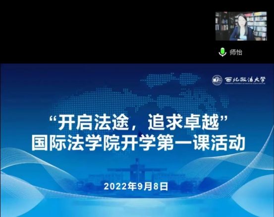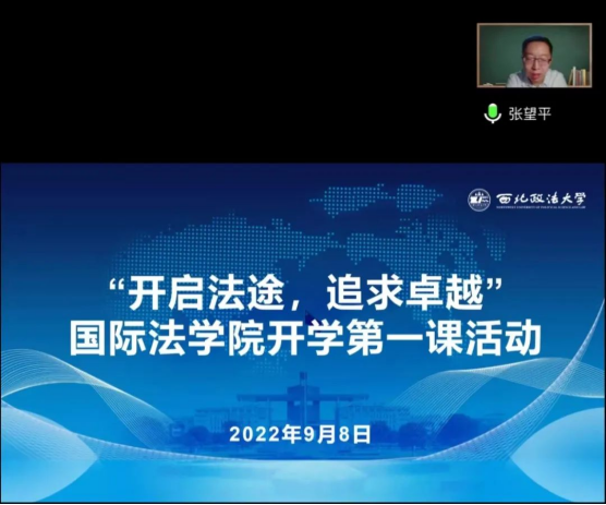 9月8日,69堂 通过线上方式为2022级全体新生开启开学第一课。国际法教师代表张望平、师怡、王阳三位老师参加本次活动。活动由学院党委组织员、2022级辅导员韩潇老师主持。