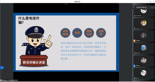 最后,张警官向新生讲解了最新型的网络诈骗方式以及电信诈骗的特点,提醒大家一定要增强预防网络诈骗的意识,提高自我防范能力,保护好人身和财产安全。在同学们的积极参与中,2022级新生入学安全教育讲座画上了圆满的句号。