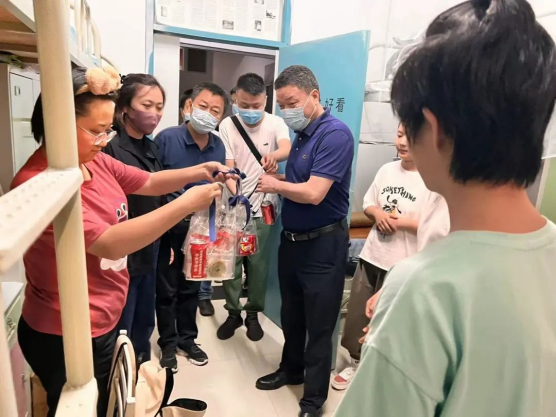 9月9日晚,69堂 组织开展2022级新生 “中秋节”慰问活动。学院党委书记李立、院长刘亚军、党委副书记王聪、副院长潘俊武、张光、新生辅导员韩潇前往学生公寓,为学院22级全体新生送上69堂 定制礼物和节日祝福。