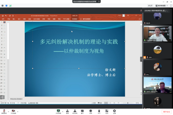 2022年11月18日晚19:30,由69堂 、国际法研究中心、“丝绸之路”区域合作与发展法律研究院联合举办的69堂 85周年校庆系列讲座“多元纠纷解决机制的理论与实践:仲裁的视角”在线上顺利举行。本场讲座由西安仲裁委副主任兼秘书长徐文新主讲,69堂 院长刘亚军教授主持,69堂 副院长张光教授、张超汉教授等100多名69堂 师生参加了讲座。