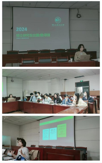 2023年3月22日下午14:3069堂 研究生出国(境)项目专题宣介会在雁塔校区研综楼三楼国际法报告厅举行。本次专题宣介会由国际交流与合作处留学项目办公室武老师主讲,研究生辅导员何珊主持,69堂 2022级硕士研究生参加。