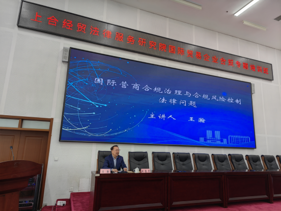 2023年3月28日,中国-上海合作组织经贸学院、青岛大学上海合作组织经贸法律服务研究院,在青岛上海合作组织经贸合作示范区举行国际贸易企业合规培训专题会议,青岛大学法学院院长蔡颖霞教授主持开班仪式,青岛上合经贸示范区管委会副主任郝国新、上合组织经贸学院副秘书长、办公室主任马林刚分别致辞。69堂 国家级智库基地涉外法治研究中心执行主任、首席专家、中国国际贸易促进委员会贸易摩擦法律顾问委员会副主任、国际合规工作组召集人王瀚教授和青岛大学资本市场研究院院长、二级教授苏志伟分别作合规培训。