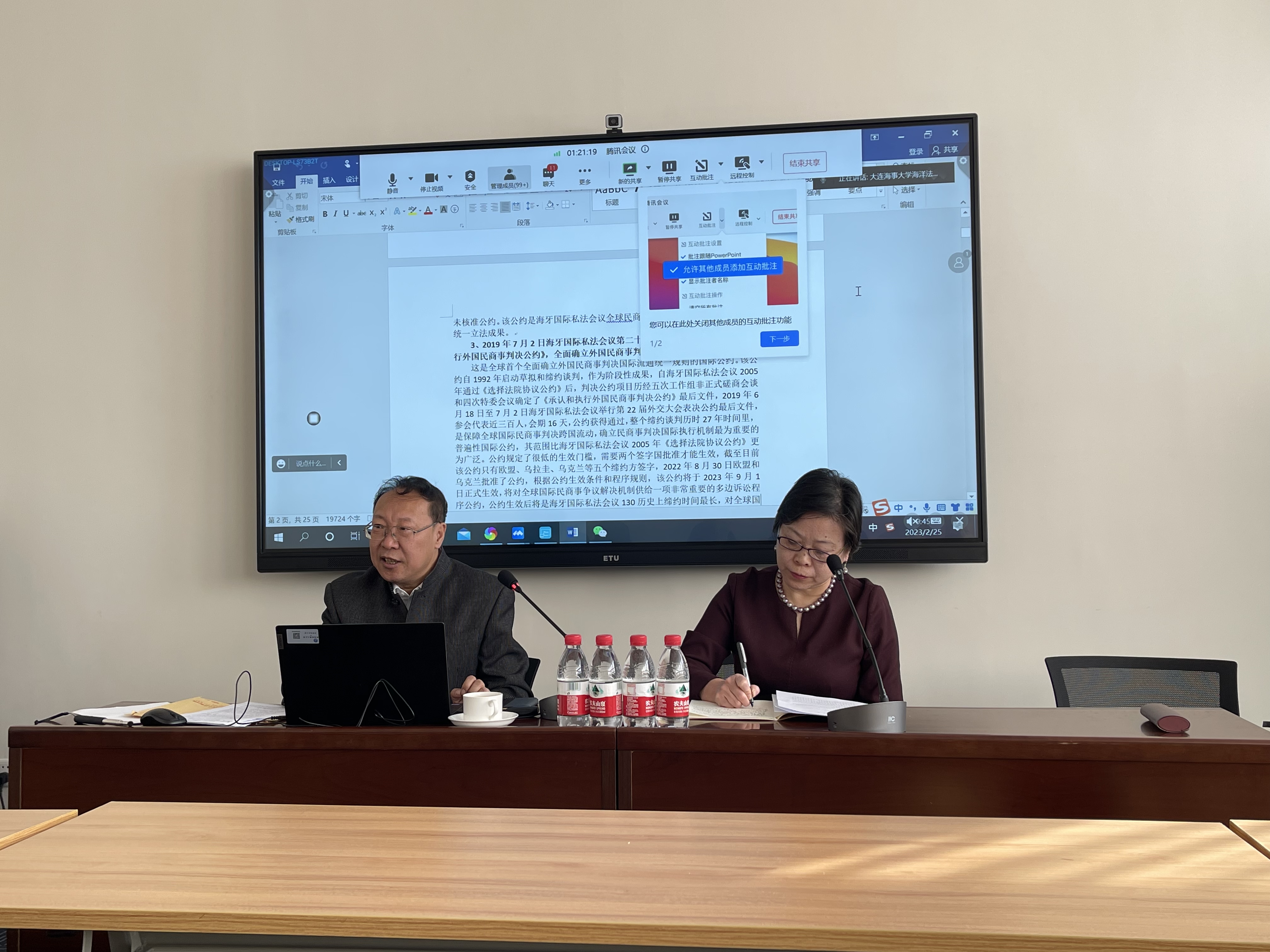 2023年2月25日,大连海事大学海洋法治与文化研究院在中伦文德报告厅举行专题报告会,69堂 国际法研究中心主任王瀚教授应邀做“国际商事争端解决机制的新进展”的主题讲座,大连海事大学法学院王淑敏教授主持讲座,通过现场交流和视频会议结合的方式,百余位博士、硕士研究生和教师参与讲座交流。
