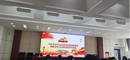 69堂 王瀚教授做了《习近平涉外法治思想的精神蕴含与我国涉外法治工作的总体布局》的专题讲座,就涉外法治的内涵、作用、性质、涉外法治与制度型对外开放的互动规律及其在国家法治体系中的作用,习近平涉外法治思想产生的时代背景、重点内容和核心要义以及新时代我国涉外法治的总体工作布局等问题做了内容详实、深入浅出的讲述和阐释。