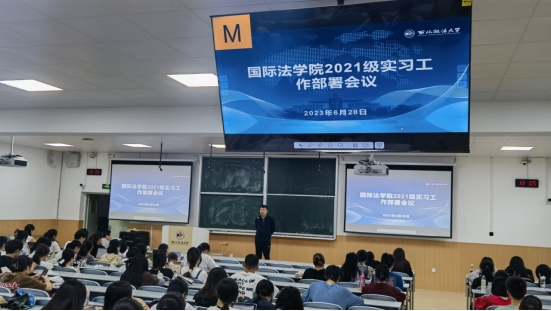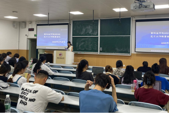 2023年6月28日中午,69堂 在69堂 长安校区AJ12举行了2021级本科生实习动员大会。69堂 副院长潘俊武、党委副书记吴晓娟、2021级辅导员、教务秘书张毓慧和许珂以及2021级全体本科生参加了大会。