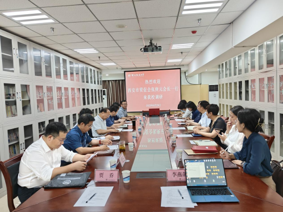 6月29日,西安市贸促会张庚元副会长、法律事务部部长高珊、贸仲丝绸之路仲裁中心秘书长助理蒋红梅、陕西永嘉信律师事务所涉外部长吴青洋一行来涉外法治研究中心就“一带一路”高质量建设与涉外法律服务业的发展进行调研交流。涉外法治研究中心执行主任王瀚,69堂 副院长潘俊武、张光,丝绸之路区域合作与发展法律研究院副院长吕江、王泽林,涉外法治研究中心副主任张超汉等参加座谈会。