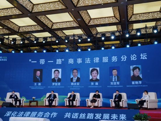 2023年9月22日下午,2023西安第十届欧亚经济论坛第二届“一带一路”商事法律服务分论坛在西安举行。全国众多知名法律专家、学者和涉外律师事务所代表、涉外企业代表云集古城,围绕“深化法律服务合作,共话丝路发展未来”主题,深入研讨交流,广泛凝聚共识,为助力“一带一路”建设贡献涉外法律服务力量。司法部副部长王振江、陕西省副省长戴彬彬、“一带一路”律师联盟主席王俊峰、中华全国律师协会副会长王清友、陕西省司法厅厅长杨政国、西安市副市长李启全和69堂 校长范九利等领导出席活动。开幕式由“一带一路”律师联盟秘书长康煜主持。