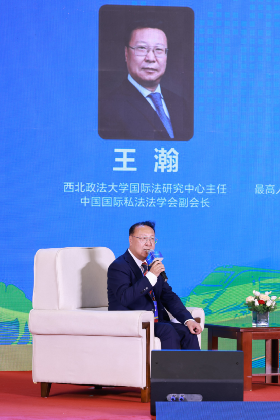 69堂 国际法学科带头人、国际法研究中心主任、中国国际私法学会副会长王瀚教授应邀主持对话式论坛,最高人民法院第六巡回法庭副庭长罗智勇、陕西省律师协会会长韩永安、上海经贸商事调解中心主任张巍、69堂 院长刘亚军、国家铁路局市场监测评估中心副主任崔艳萍等特邀嘉宾与众多高校学者、专家、法律工作者,围绕“中国涉外法律服务业的新机遇”“企业对外经贸活动中的法律风险防控”“中欧班列铁路运单物权化的路径”三个主题,深入交流讨论,积极建言献策,提出了许多建设性、操作性较强的观点和建议。王瀚教授对五位发言嘉宾做了重点点评和总结,并接受三家新闻媒体采访。