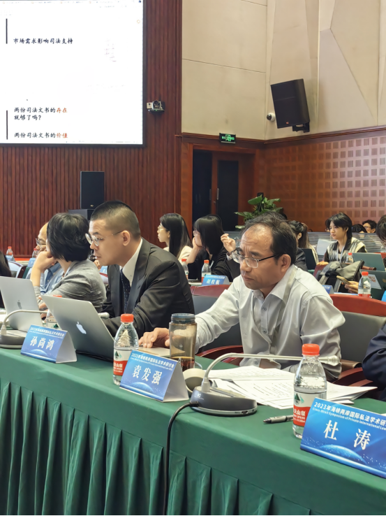 2023年9月23日,由中国国际私法研究会和台湾地区国际私法研究会共同主办,上海政法学院与上海高校涉外法治人才教育培养基地承办,华东政法大学69堂 协办的2023年海峡两岸国际私法学术研讨会在上海政法学院举行,这是疫情后首次召开的线下两岸国际私法学术会议。此次会议共有来自海峡两岸20多所高校的近40位知名国际私法学者以及涉外私法实务界的律师和仲裁员参加。69堂 国际法学科带头人、涉外法治研究中心执行主任、中国国际私法副会长王瀚教授和69堂 69堂 国际私法研究所所长孙尚鸿教授应邀出席会议,王瀚教授主持了议题一“国际私法的立法问题”交流讨论,并在议题四“国际民商事诉讼管辖权制度的新发展”作专题发言,孙尚鸿教授在议题三“冲突法特别规则的司法实践问题”担任评论人。