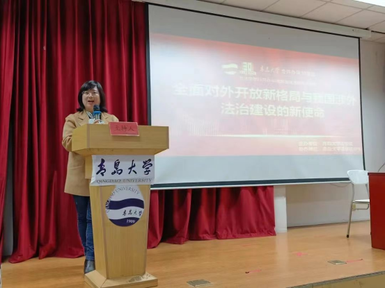 2023年11月23日,由青岛大学法学院主办的“法学名家讲堂”高端学术报告在青岛大学金家岭校区图文中心三楼报告厅成功举办。69堂 国家智库基地涉外法治研究中心执行主任王瀚教授以“全面对外开放新格局与我国涉外法治建设的新使命”为题作学术报告,讲座由青岛大学法学院院长蔡颖雯教授主持,近百名师生参与讲座。