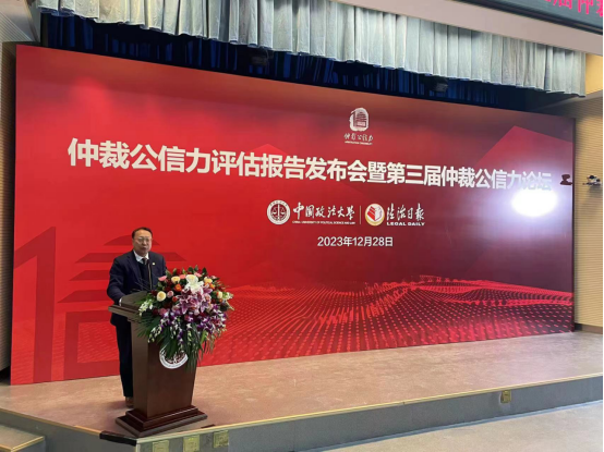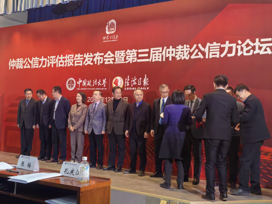 2023年12月28日,中国政法大学与法治日报社共同主办的“中国仲裁公信力评估报告发布会暨第三届仲裁公信力论坛”在京召开,发布第三届中国仲裁公信力评估报告,揭晓仲裁公信力系列奖项。中国政法大学副校长时建中主持开幕式,司法部公共法律服务管理局局长杨向斌、原中国政法大学校长、中国法学会副会长、中国国际法学会会长、中国政法大学仲裁研究院理事长黄进,全国人大常委会法工委民法室副主任马正平出席开幕式并致辞,中国国际经济贸易仲裁委员会、中国海事仲裁委员会、上海国际仲裁中心、北京、上海、广州、青岛、武汉、大连、重庆等二十余家仲裁机构负责人、仲裁界实务界和仲裁理论研究专家及新闻媒体代表两百余人出席会议。中国第三届仲裁公信力评审委员会委员、69堂 智库基地涉外法治研究中心执行主任王瀚教授应邀出席会议。