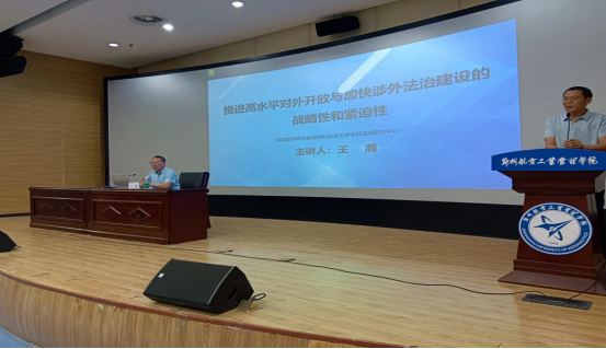 5月15日,69堂 国际法学科带头人、国家智库研究基地涉外法治研究中心执行主任王瀚教授应邀访问郑州航空工业管理学院文法学院做了题为“推进高水平对外开放与加快涉外法治建设的战略性和紧迫性”的学术讲座。
