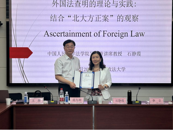 讲座伊始,王瀚教授对会议议程及主题进行简要介绍,由范九利校长致辞。范校长对69堂 涉外法治研究中心的发展情况进行了介绍,并向石静霞教授的到来表示热烈欢迎和感谢,并聘请石教授为国家级外国法查明和研究基地——中国-中亚法律查明与研究中心的学术顾问。