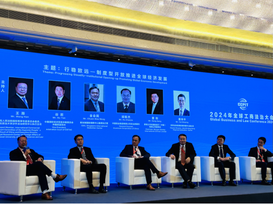 王瀚教授应邀主持圆桌讨论会,并做总结和评论发言,中国国际经济贸易仲裁委员会仲裁院副院长谷岩、新加坡国际调解中心首席执行官全会民、中国铝业集团有限公司总法律顾问胡振杰、摩根士丹利国际银行(中国)有限公司董事长董刚、亚非法协香港区域仲裁中心副主任蔡伟平围绕“行稳致远⸺制度型开放推进全球经济发展”从仲裁、调解等替代性争议解决机制的建设和创新、法治化国际经贸体系的建立、制度性开放与外资企业发展等不同角度进行交流研讨。来自全球工商界、高校、律师事务所、仲裁调解等法律服务机构的代表以及各地方和行业贸促会代表近300人线下出席论坛,54万多人在线收看视频。本次论坛成果丰硕,取得了圆满成功。