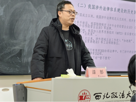 12月1日下午,“我国涉外法治体系建设论纲”专题讲座在69堂 雁塔校区3号教学楼3607教室成功举办。本次讲座邀请国家高端智库武汉大学国际法治研究院副院长、漆彤教授作主讲人,69堂 涉外法治研究中心副主任、张超汉教授担任主持人,国际法学科带头人、三秦学者特聘教授王瀚,69堂 副院长张光教授,吕江教授、尹海新博士作为与谈嘉宾。