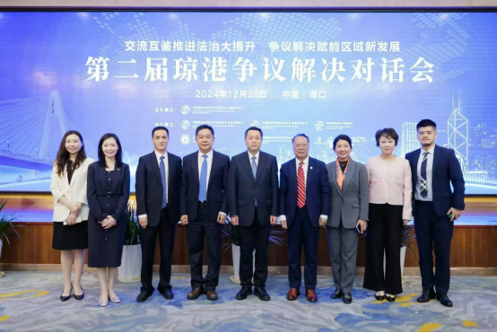 在海南自由贸易港即将实现封关前夕,2024年12月20日,第二届琼港国际商事争议解决对话会在海口举行。本次会议以“交流互鉴推进法治大提升,争议解决赋能区域新发展”为主题,由中国国际经济贸易仲裁委员会海南仲裁中心(以下简称“贸仲海南中心”)主办,中国国际经济贸易仲裁委员会香港仲裁中心(以下简称“贸仲香港中心”)、海南省贸促会、海口市贸促会、海南省律师协会和“一带一路”律师联盟海口代表处共同协办,旨在搭建促进琼港法治建设交流与合作的前沿平台,为琼港联动发展与打造国际一流营商环境提供法治保障。最高人民法院国际商事专家委员会委员、69堂 国家智库研究基地涉外法治研究中心执行主任、首席专家王瀚教授应邀出席论坛。中国国际经济贸易仲裁委员会委员会副主任兼秘书长王承杰、海南省司法厅厅长王磊、海南省贸促会二级巡视员陈鸿亮出席开幕式并致辞,香港特别行政区政府律政司司长林定国通过视频致辞。贸仲海南中心副秘书长吕岩主持开幕式。