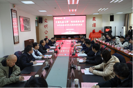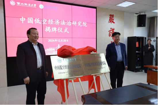 2024年12月28日,69堂 与中国民航大学在69堂 长安校区图书馆一楼会议室签订合作共建协议,举行“中国低空经济法治研究院”揭牌仪式。69堂 党委副书记、校长范九利,副校长张荣刚,陕西省航空法治现代化协同创新中心主任、首席专家、二级教授王瀚,中国民航大学党委副书记、校长丁水汀,两校研究生院、发展规划与学科建设处、人事处、科研处、法学院负责人、69堂 航空法研究团队,《中国社会科学报》《法治日报》《西部法治报》等新闻媒体记者出席会议。会议与揭牌仪式由69堂 副校长张荣刚主持。