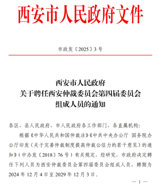 2025年3月13日,西安市人民政府发布《关于聘任西安仲裁委第四届委员会组成人员的通知》,王瀚教授受聘西安仲裁委员会第四届委员会委员,聘期为2024年12月4日至2029年12月3日。