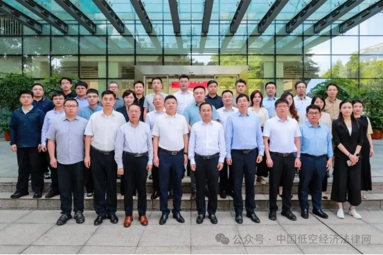 西南政法大学林维校长与重庆市委军民融合办相关负责人共同为西南政法大学低空经济研究院揭牌,重庆市政协提案委专职副主任侯东德,重庆市梁平区委常委、区委政法委书记徐勇,民航重庆安全监督管理局原局长、重庆市现代航空经济研究院研究员邓晓帆,中国低空经济法治研究院院长王瀚共同见证。