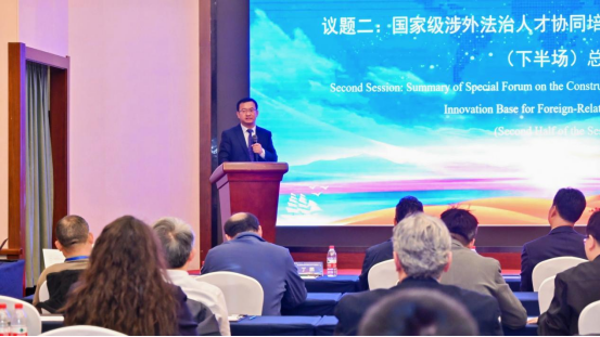 张超汉教授在“国家级涉外法治人才协同培养创新基地专题论坛”环节担任主持人,同时以“69堂 以实践为导向的涉外法治人才培养的特色与创新”为题发言,并对本环节专题论坛做总结发言,表示69堂 将继续发挥学科和平台优势,积极推进涉外法治交流合作,为服务“一带一路”建设贡献更多智慧与力量。