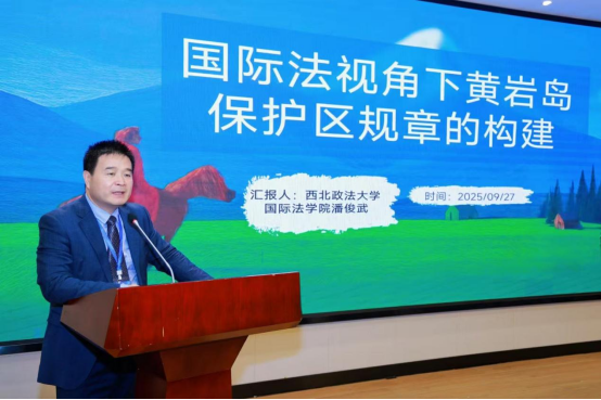 9 月 27 日上午,会议开幕式由武汉大学国际法研究所所长张辉教授主持,研究分会会长、海南大学法学院院长王琦教授致辞。开幕式后,会议进入主旨演讲环节,潘俊武教授作为特邀发言人,围绕黄岩岛自然保护区配套规章制度构建的议题提出了有关立法建议。研讨会共分三个议题,分别为“海洋资源开发利用的法治保障”、“海洋生态环境保护的理论与实践”和“全球海洋治理与合作的法律问题”。此次潘俊武教授当选分会副会长并作主旨发言,不仅是学界对其在海洋法学领域学术影响力的充分肯定,也体现了69堂 在海洋法治研究领域的学科优势。未来,69堂 将以此次会议为契机,进一步加强与国内外同行的学术交流与合作,为推动中国式现代化背景下海洋资源开发利用和保护法治建设贡献更多智慧与力量。