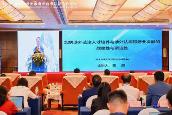 大会举行了《中国云南自由贸易试验区临时仲裁指南》、《缅甸投资法及实施条例中文译本》、《中国-南亚东南亚“调解优先”昆明倡议》发布式和签约仪式。论坛设立主旨演讲和平行论坛两个环节。王瀚教授在论坛主旨演讲环节做了《加快涉外法治人才培养和涉外法律服务业发展的战略性与紧迫性》的主题演讲,分别就全球法律服务要素流动和发展的趋势,涉外法律服务业与一带一路和我国对外开放的互动影响与支撑性、保障性的作用,我国涉外法律服务业和涉外法治人才培养存在的问题与制度创新等问题做了深入细致的讲解,强调将发展涉外法律服务业纳入法治轨道和制定我国涉外法律服务业促进保障法的必要性和重要性。