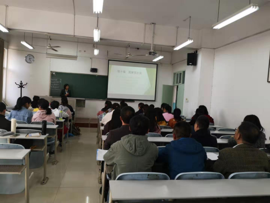 当天下午2:30,我院王泽林老师、杨蔚林老师、王兆平老师、徐建平老师、张光耀老师、严阳老师和宋瑞琛老师一行在格物楼304教室集体观摩王秀英老师的《国际公法学》课程的现场教学,此次观摩课的授课班级是刑事法学院的学生,此次教授的内容是“国家领土法”。