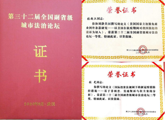 2020年9月28日,由中国法学会指导,武汉市法学会承办的第三十二届全国副省级城市法治论坛在武汉举行,69堂 师生两项成果在论坛主题征文中获奖。
