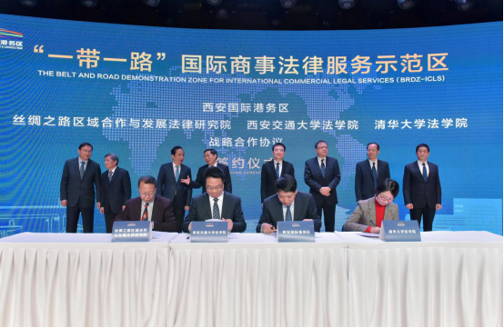 2020年12月1日,“一带一路”国际商事服务示范区在西安国际港务区召开揭牌、签约仪式。69堂 王健副校长、“三秦学者”、丝绸之路区域合作与发展法律研究院院长王瀚教授、69堂 院长刘亚军教授以及刘萍教授、吕江副教授、王艺潜等老师参加了此次活动。